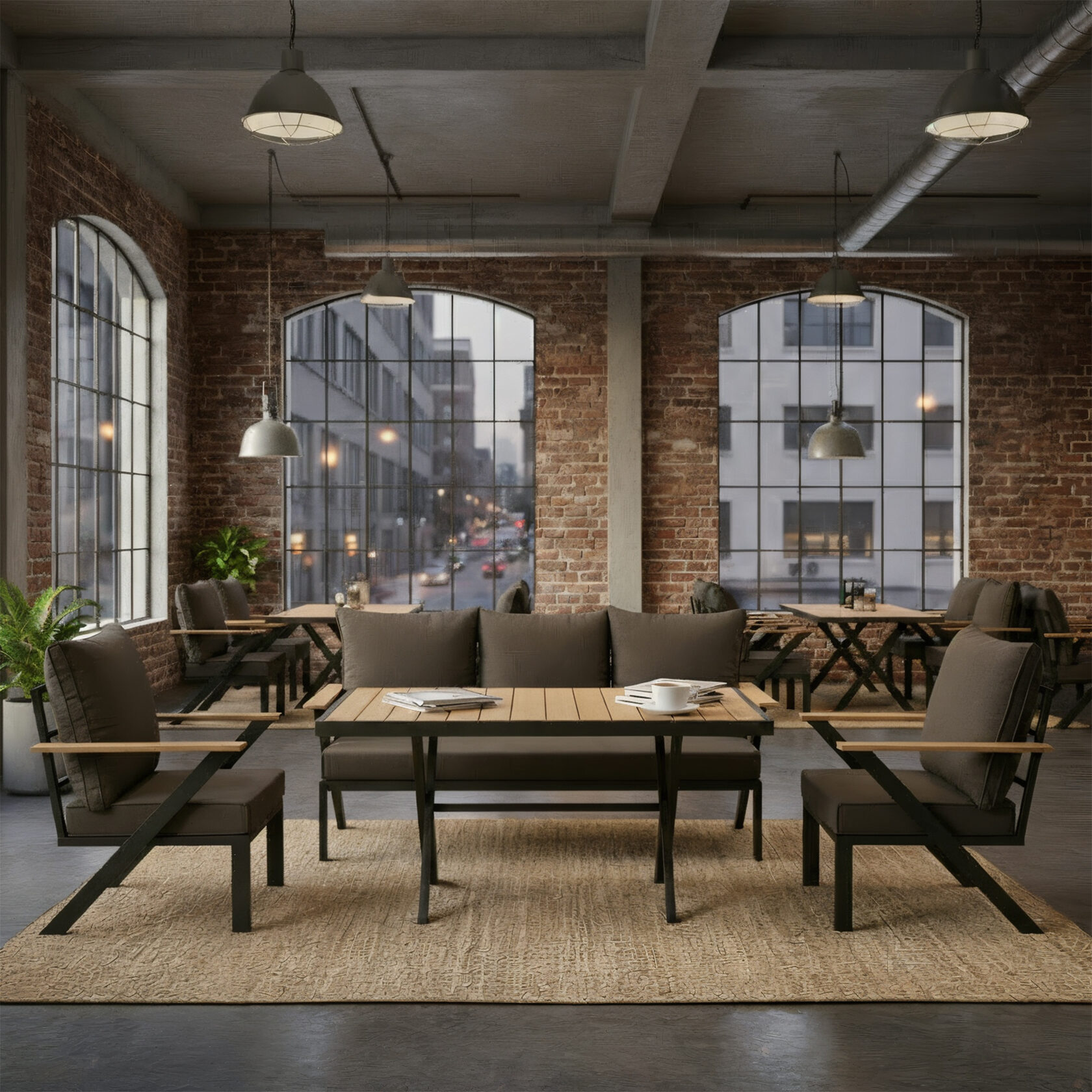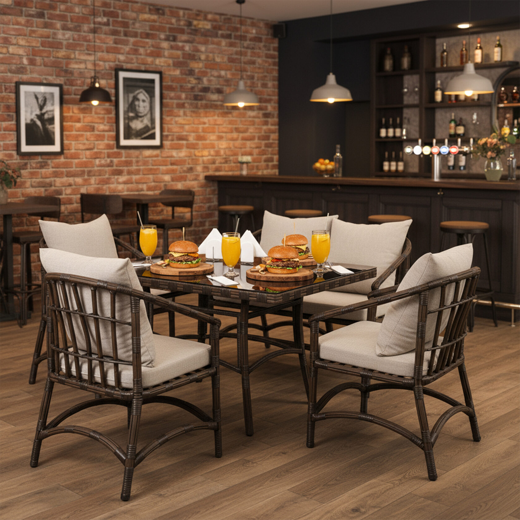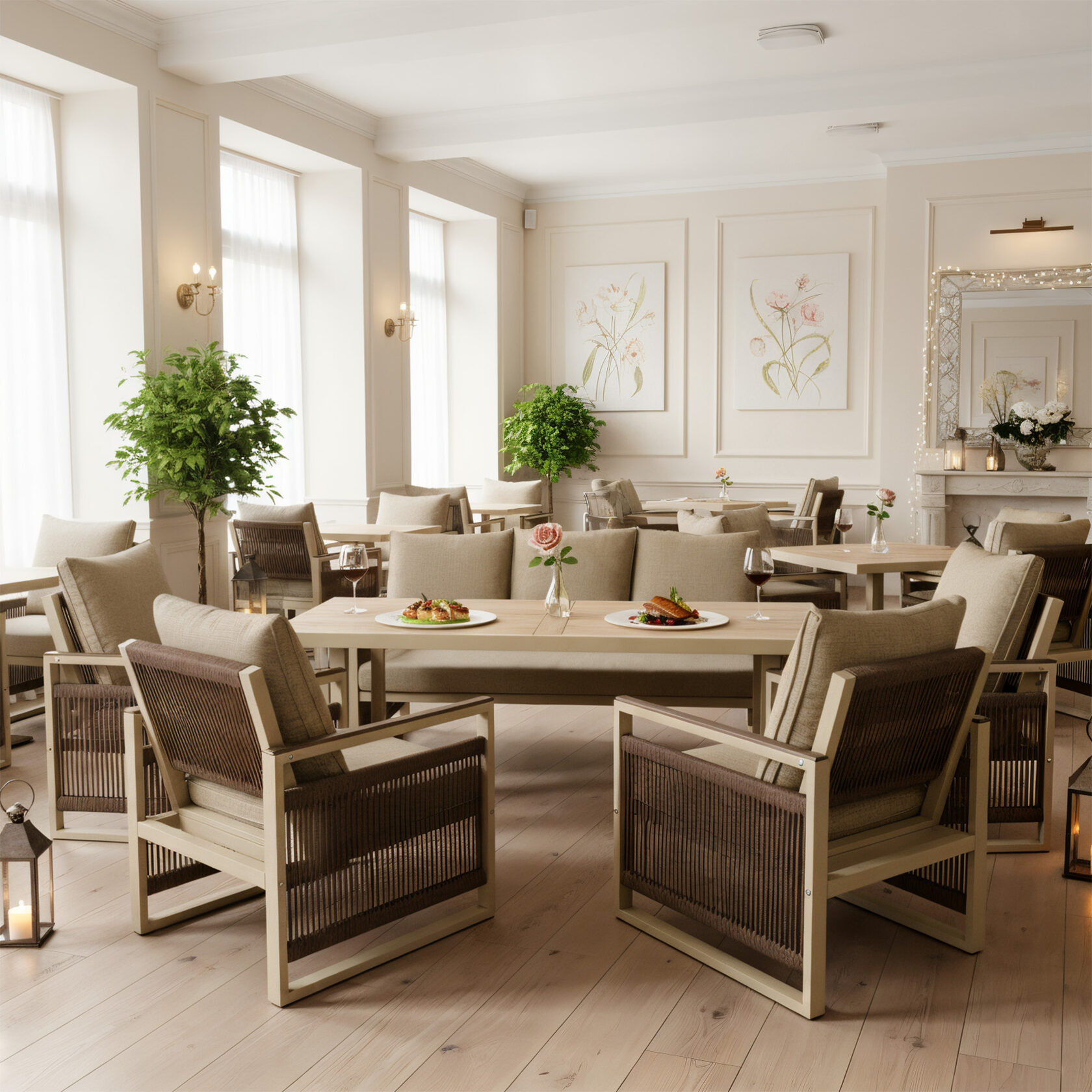 Этот элегантный комплект мебели станет идеальным выбором для гостиниц, ресторанов и кафе, стремящихся предложить своим посетителям комфорт и стильную атмосферу. Стальной каркас обеспечивает надежность и устойчивость, гарантируя долгосрочную эксплуатацию даже при интенсивном использовании.