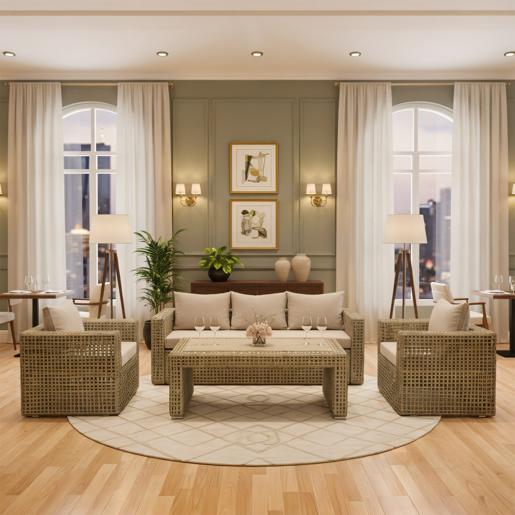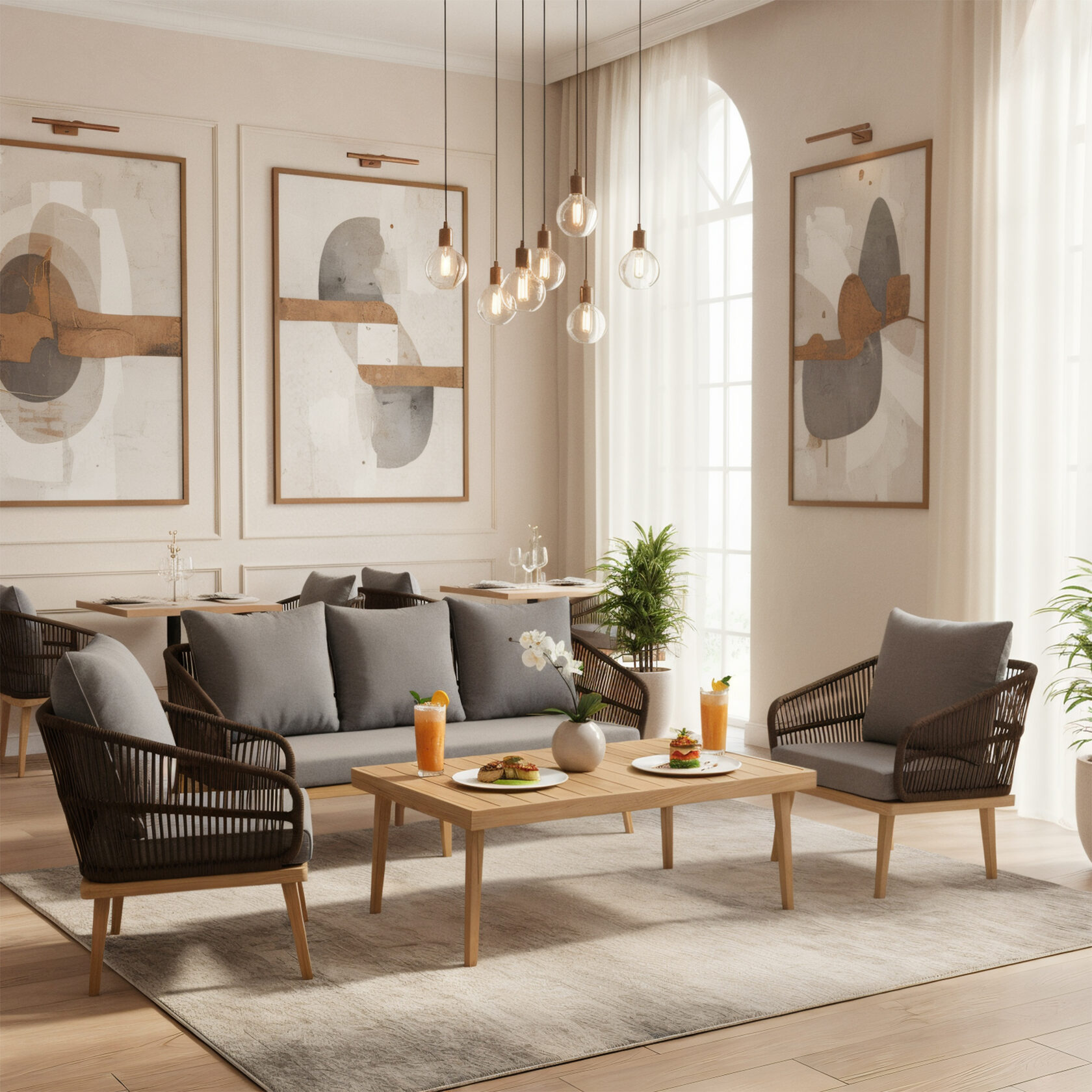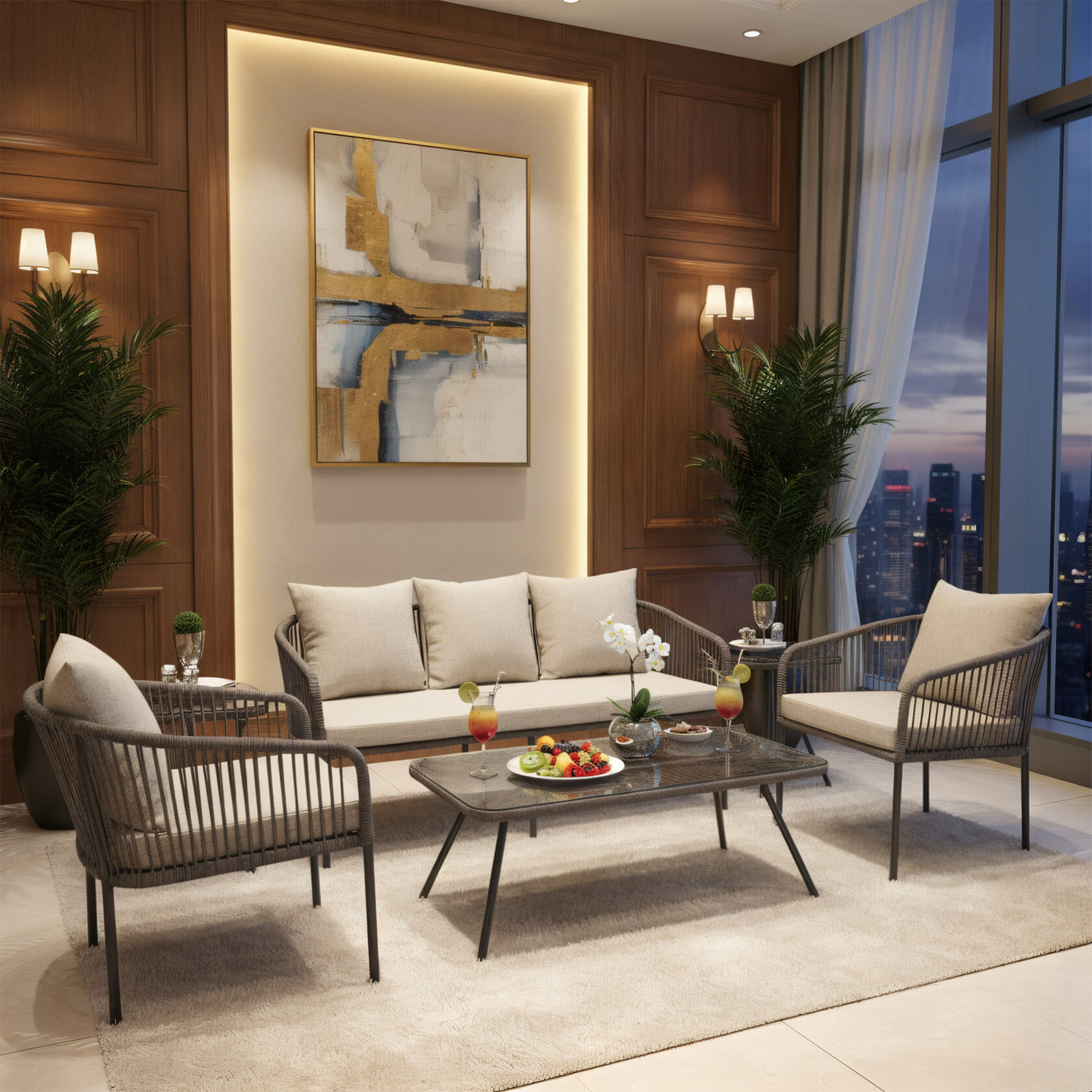 Этот элегантный комплект мебели станет идеальным выбором для гостиниц, ресторанов и кафе, стремящихся предложить своим посетителям комфорт и стильную атмосферу. Стальной каркас обеспечивает надежность и устойчивость, гарантируя долгосрочную эксплуатацию даже при интенсивном использовании.