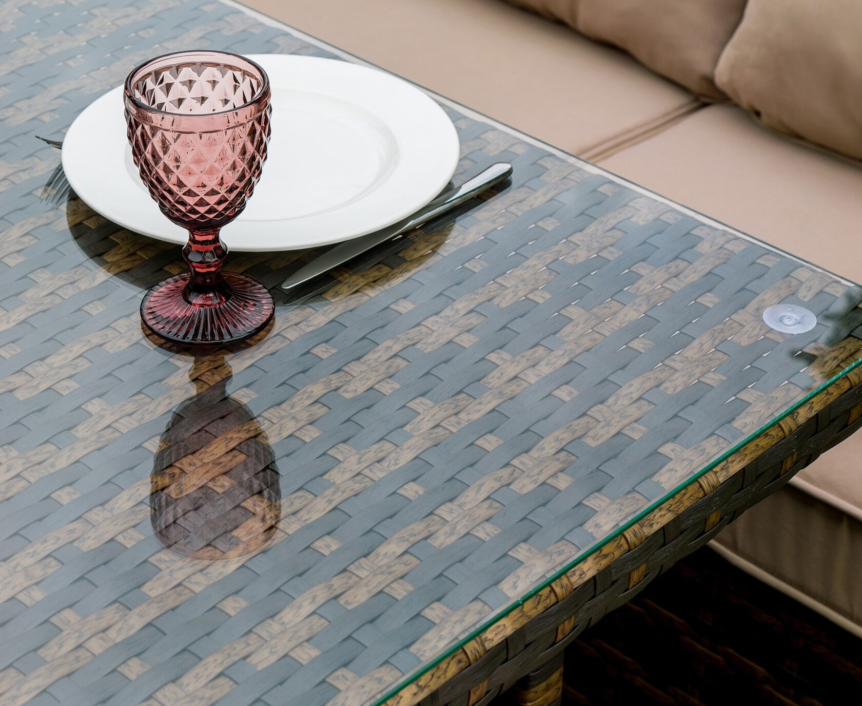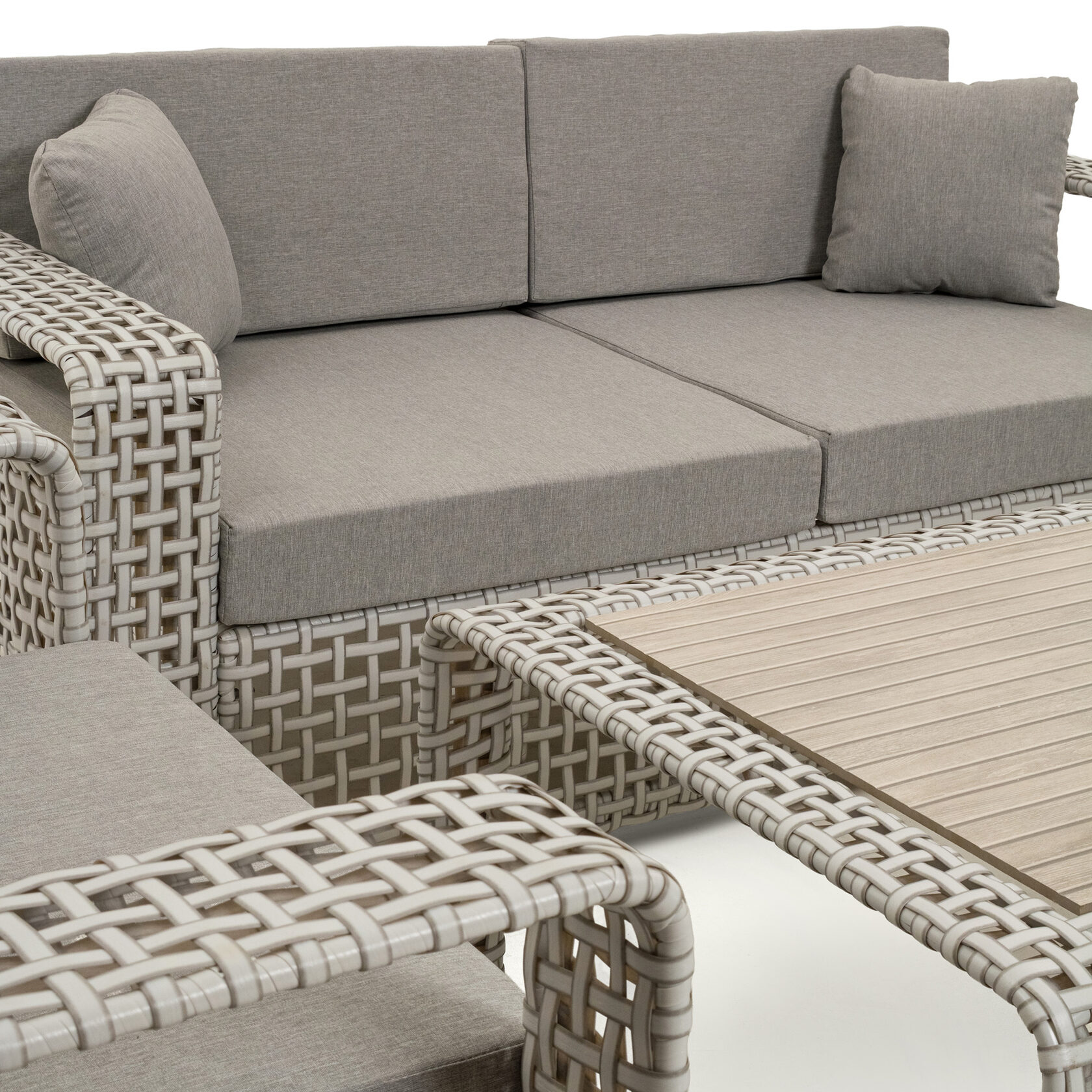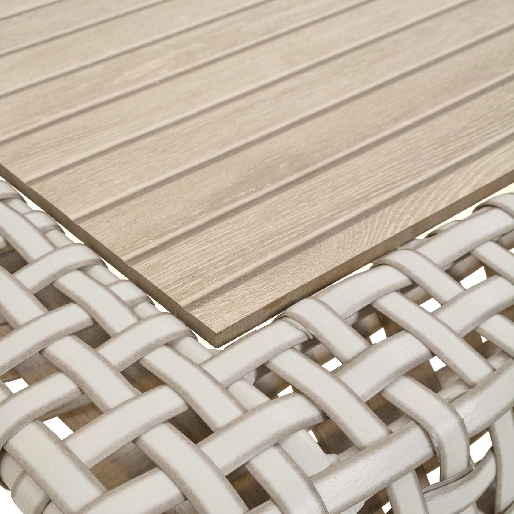 Использование премиального искусственного ротанга обеспечивает долговечность и устойчивость к различным погодным условиям. Элементы из натурального дерева добавляют теплоту и природное очарование. Дерево прекрасно сочетается с ротангом, усиливая общую эстетическую привлекательность. Стол отлично сочетается с набором мебели «Верона».